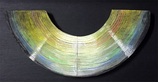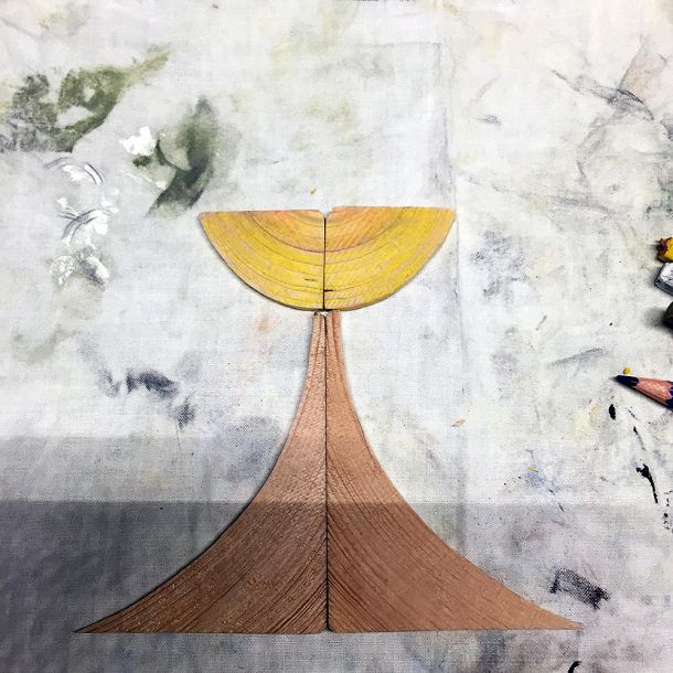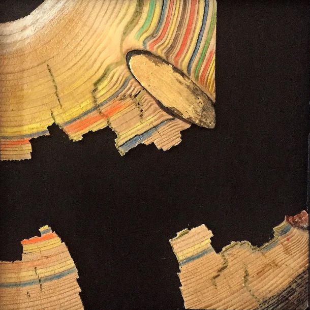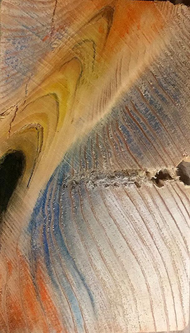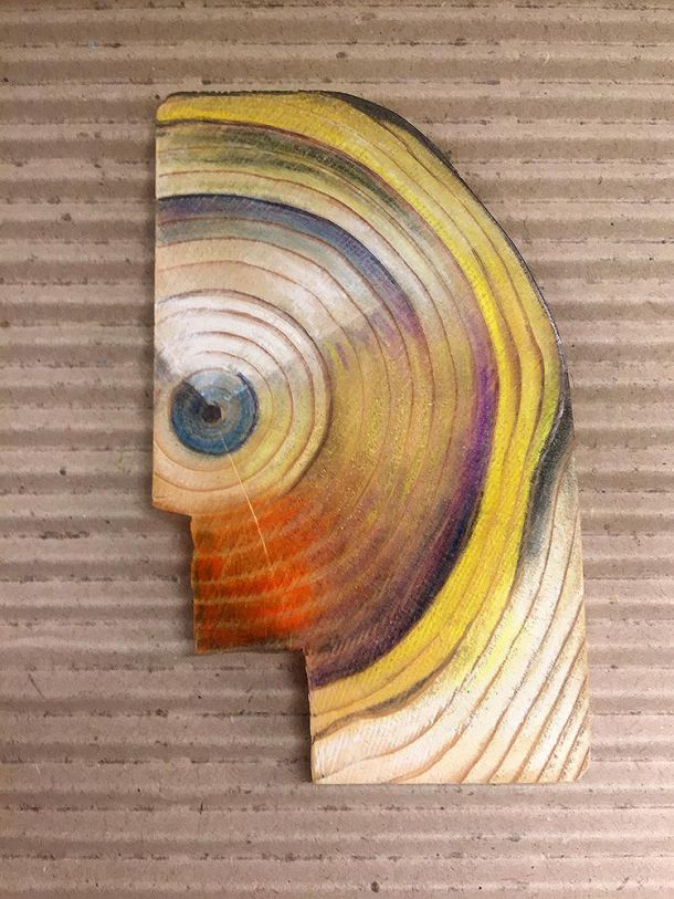 Im ersten kurzen Leben als Dachbalken fungiert und nach einem Sabbatjahr im Schuppen plötzlich - fein filetiert - zu neuem Leben erweckt, hat jede kleine Holzscheibe eine eigene Geschichte zu erzählen, die durch akzentuierte Colorierungen untermalt werden.